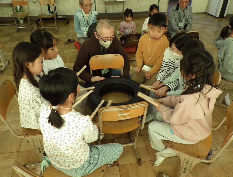 双六のあとは、みんな仲良く郷土資料館の昔のおもちゃで楽しく遊びました。