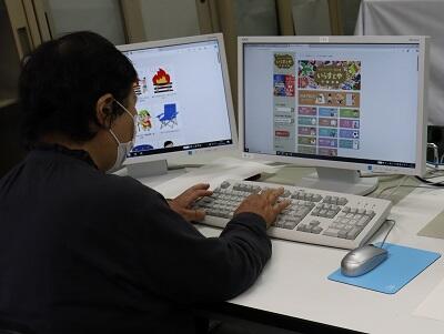 その後、ウェブ上のマウス操作練習ソフトで、楽しみながらマウス操作の練習を行いました。もぐらたたきゲームでは「クリック」の練習を、ジグソーパズルゲームでは脳トレを兼ねて「ドラッグ&ドロップ」の練習を行いました。受講者の方も、実際に操作する方が楽しいようで、笑顔で画面に向かってマウスクリックを繰り返していました。