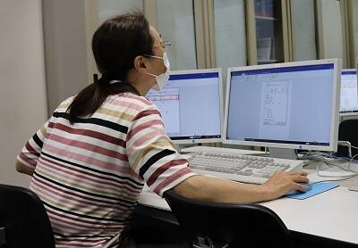 その後、講師が用意したサンプル教材を呼び出して、数字や四則計算の計算式を入力する練習を行いました。元の数字を変えて「エンター」キーを押すだけで、瞬時に計算結果が変わるのを見て感嘆の声をあげる方もいました。