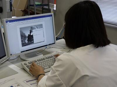 事前に用意しておいた「ひながた」を利用して、文字の書体や大きさ、配置などを変更する操作を行いながら、パソコン操作の練習をしていただきました。画像の挿入や拡大縮小、移動等も、最初は苦戦していたようでしたが、慣れてくると自在に操っている方が多くみられました。