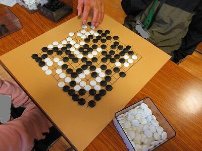 実際に碁石を置きながら、新しい戦法を教わりました。