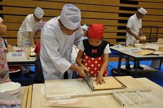 そば打ち教室にはグループごとに講師の先生がついてください、粉をこねる、伸ばす、切る、ゆでるといった作業を体験しました。