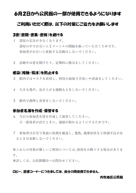 新型コロナウイルス感染拡大防止対策に伴う公民館主催事業の中止について
