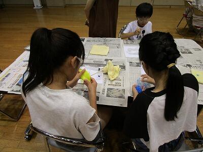 参加者の真剣なまなざし、スライムが伸びたりふくらんだりして喜んだ時の顔がキラキラしていたのが印象的で、わたしにとってもさわやかな夏の思い出となりました。