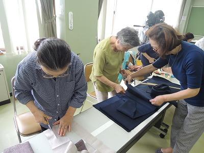 この講座は生涯学習市民推進員企画のもと、たんすに眠っている思い出の着物をバッグにしてよみがえらせることを目的として行われました。