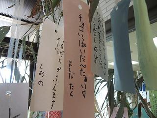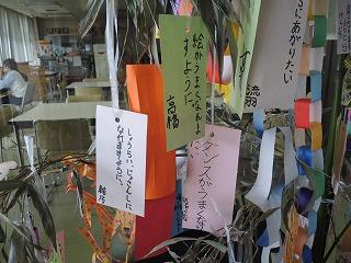 正風館に七夕飾りを置きました。利用者に短冊を書いていただくものです。初めての試みで反応が気がかりでしたが、いざ置いてみると短冊を何度も追加するほどで、皆さん楽しんでくださっているようです。