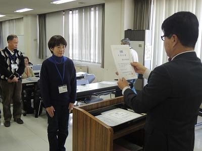 料理を皆さんで美味しく食べ、後片付けを終えて、庄和地区公民館長より修了式を行い、一人ひとりに修了証が授与されました。