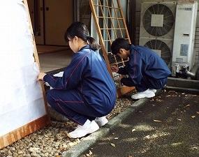 お母さんたちは一生懸命、再生紙でカブトを折りました!