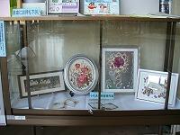 1階ロビーのガラスケースは、当館を利用されている団体の方々に作品等の