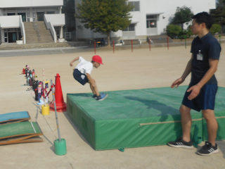陸上につながる動きをいくつか体験しました。 【幅跳び】
