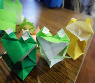 「ケロケロかえる」です。口がパクパクします。【折り紙】
