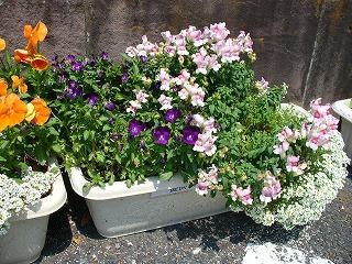 実は前回お持ちいただいたプランターのお花がまだ綺麗に咲いているので