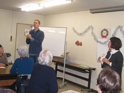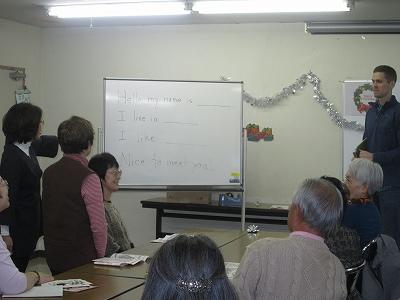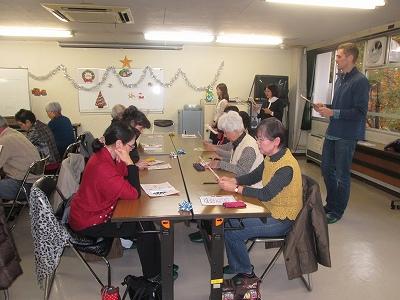 まず、英語で自己紹介をし、クリスマスソングを英語で歌い、