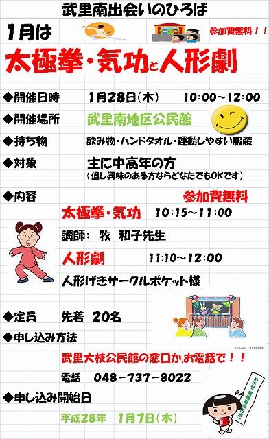 来月は、太極拳・気功と人形劇の豪華二本立てです。