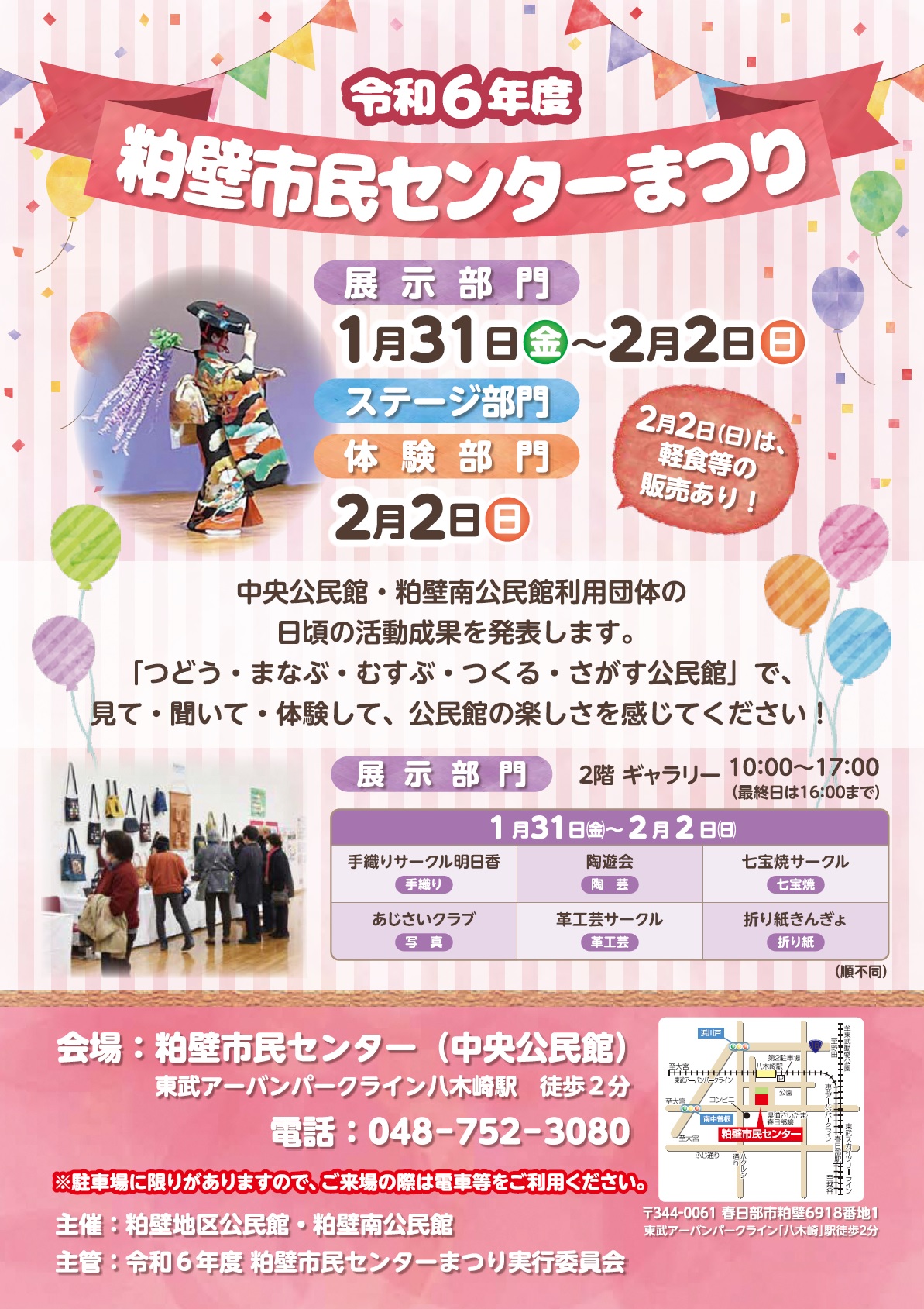 中央公民館および粕壁南公民館を利用いただいている多数の団体の
