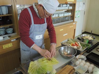 4つの班に分かれて、まずはじめに、ロールキャベツを作りました。