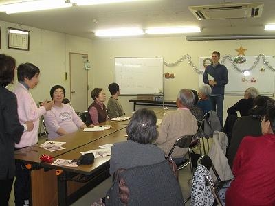 まず、英語で自己紹介をし、クリスマスソングを英語で歌い、