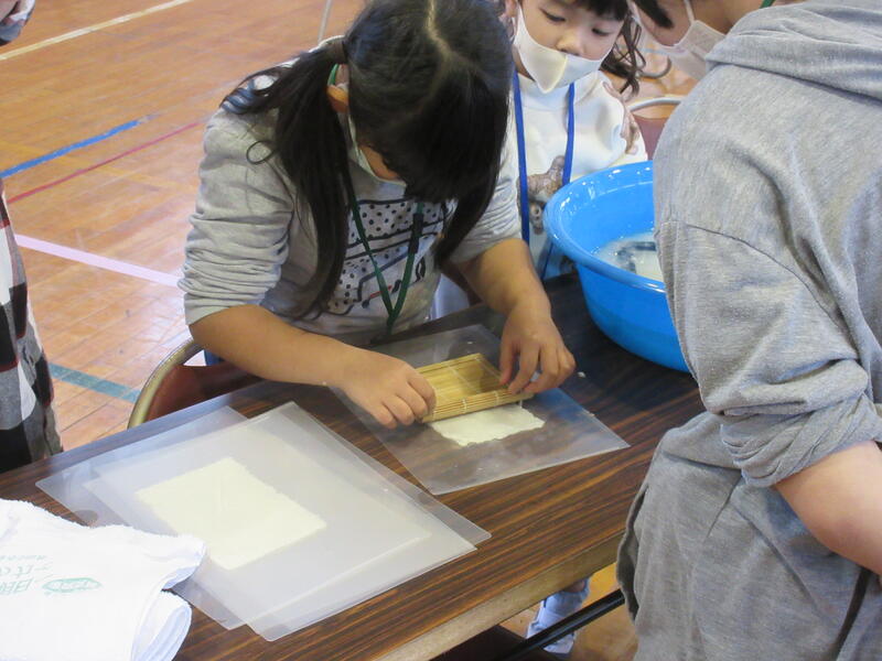 はじめに、リサイクルについての学習を行ってから、紙すきの体験をしました。