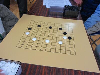 今日のポイント指導は「詰碁」を7題、みんなで考えます。子どもも大人も自分の考えを発表し正解を見つけます。
