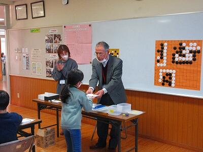 春日部ジュニア囲碁普及会より、参加児童一人一人に認定級の証書が手渡されました。