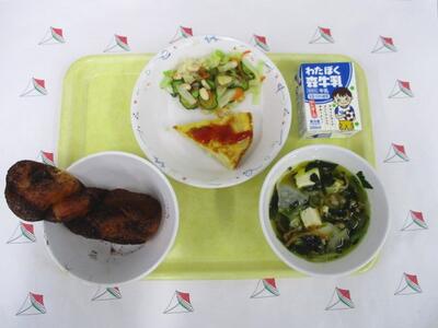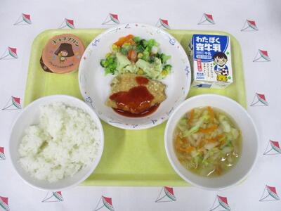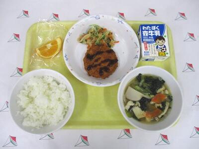いよいよ明日は公立高校入試です。そのため今日の給食は受験応援献立にしました。