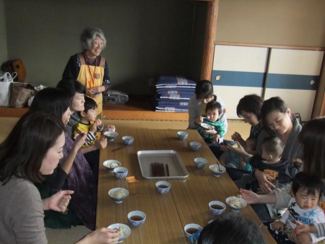先生からは、幼児期に大切な食育のお話や、子育てに関するアドバイスを頂いたり、先生が持参して下さった内牧産のお芋で、さつまいもごはんを提供して頂いたりして、楽しい時間を過ごすことが出来ました。