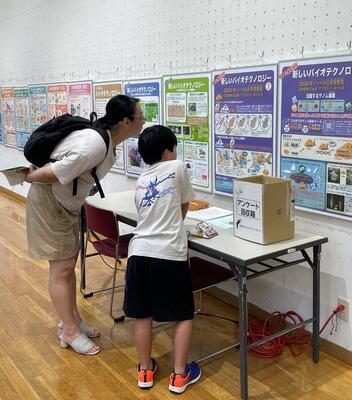 「いのちってなに?」と「ドッキン!いのちの不思議調査隊」の二種類の展示パネルで、「どうやっていのちができるのか?」「もし人間を人工的に冬眠させることができたら?」など生命科学の不思議と研究のおもしろさを学びました。