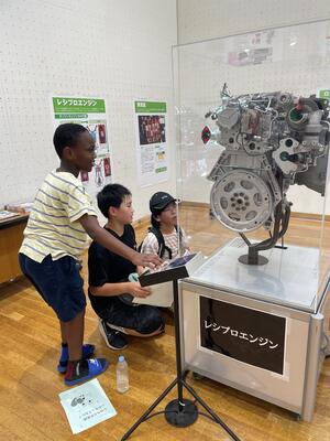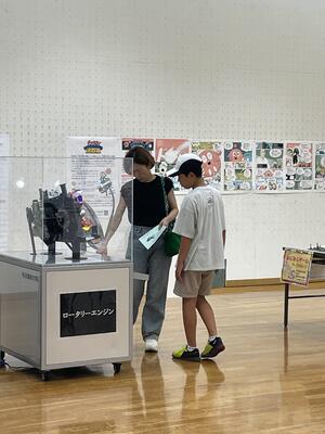 レシプロエンジン、ロータリーエンジンのカットモデルを展示。電気で動く様子は、まるで生きているようです。