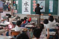 1月26日(木)粕壁小学校にて、2年生書写の授業を参観しました。子どもたちは先生と一緒に、「とん」「すぅ」「ぴた」のキーワードにあわせて、一生懸命に取り組んでいました。授業の終わりには、自分の字が上手になったことや、「とめ」「はね」「はらい」などを意識して字を書くことの大切さを学んだ様子でした。
