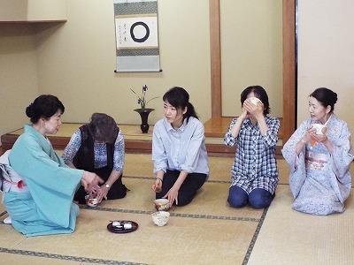 参加者の皆さんは、真剣な表情でお抹茶のたて方を学んでいました!
