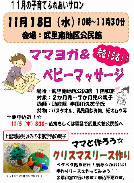 来月は、「ママヨガ&ベビーマッサージ」と「クリスマスリース作り」です。