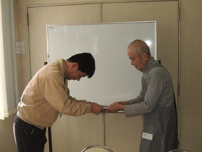 料理を皆さんで美味しく食べ、後片付けを終えて、庄和地区公民館長より修了式を行い、一人ひとりに修了証が授与されました。
