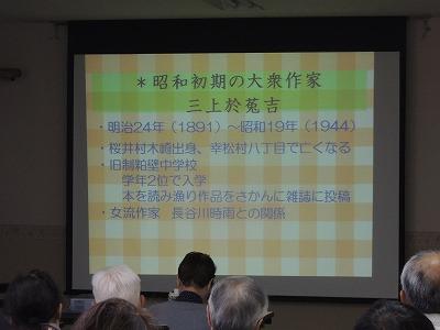 春日部市郷土資料館の實松館長が講師として、庄和にゆかりのある大衆作家「三上於菟吉」について講演しました。