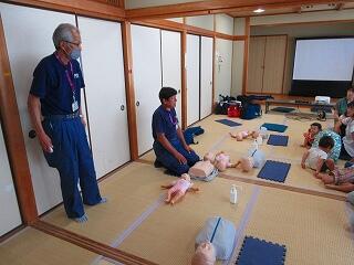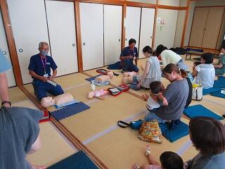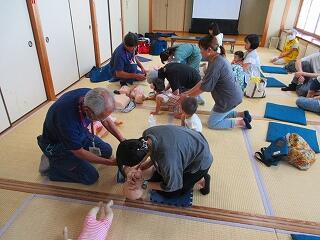 心肺蘇生、胸骨圧迫、異物除去、AEDの使用を学びました。