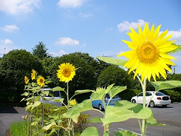 ひまわりは「向日葵」と漢字で書くように太陽の方を見て