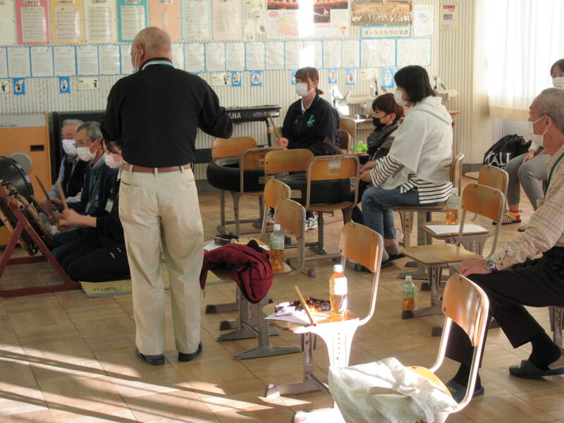 不動院野地区に江戸時代から民俗芸能として地域住民全員で引き継がれてきました。太鼓を講師の先生に教えてもらいながら、楽しく演奏します。
