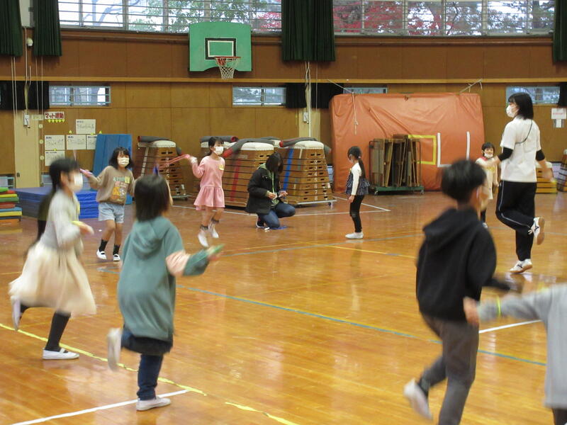 今回は全学年対象に、紙飛行機教室、遊びの広場、お囃子教室、郷土カルタすごろく、なわとび教室を行いました。