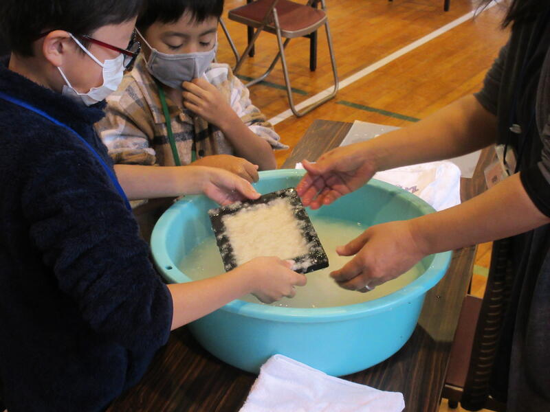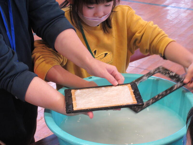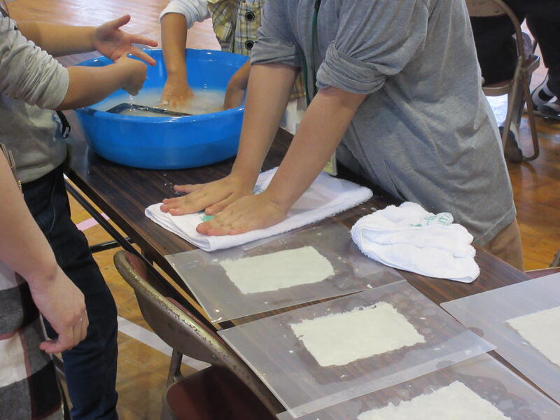 はじめに、リサイクルについての学習を行ってから、紙すきの体験をしました。