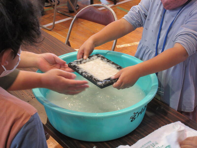 型枠から外したり、タオルで脱水したりとスタッフに手伝ってもらいながら一生懸命取り組みました。