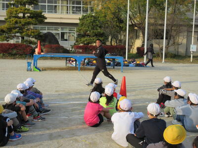 牛島小学校では3学期に持久走大会が計画されているとのこと。今日の体験がきっと生かされることでしょう。