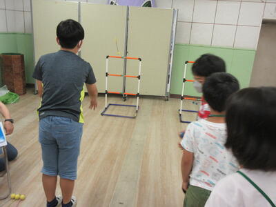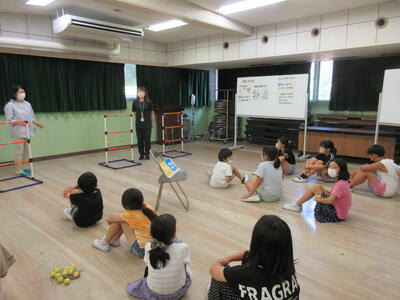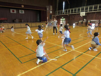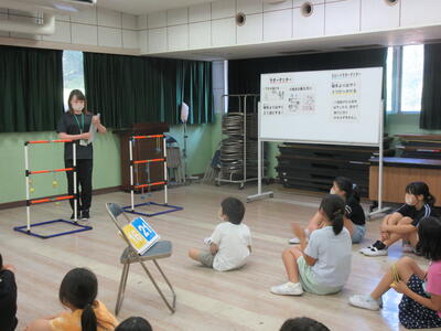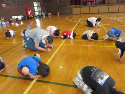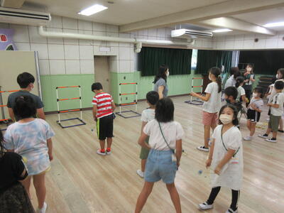 体育館が暑くて、フラバレーボールができませんでしたが、思いがけずに楽しい活動ができました。スポーツ推進課の先生方、楽しい運動をありがとうございました。また、急な活動内容の変更に会場を提供してくださった牛島小学校の先生方、ありがとうございました。