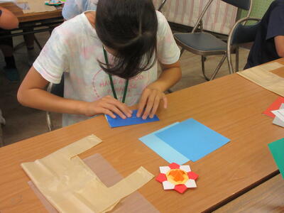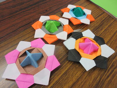 低学年の子も時間をかけて完成させることができました。一つ目が出来上がった子は2つ目3つ目と作る子もいます。一度覚えた折り方はきっと忘れることはないでしょう。学校で友達に、家庭で兄弟等にたくさんたくさん教えてあげてほしいです。