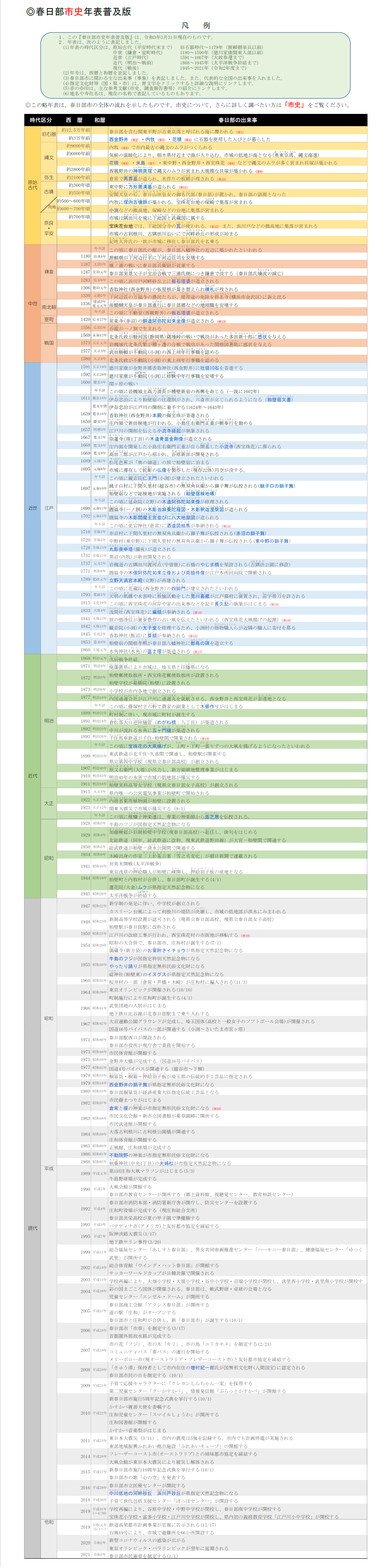PDFファイルの年表では、指定文化財や遺跡の説明へリンクがあり、詳細を見ることができます。