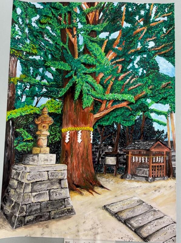 作品 東中 埼玉県小中学校児童生徒美術展 埼葛地区展 平面 特選 作品名「私のお参りする神社の御神木」3年