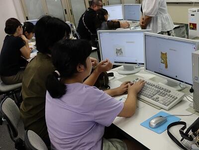 9月28日(日)の午後、視聴覚センター3階メディア研修室において、夏休み応援プロジェクト「親子で体験 生成AI」を開催しました。本講座は8月3日に予定されていましたが、台風の影響で延期になっていたものです。講師に吉田理子さんをお招きし、親子で一緒に生成AIを学ぶことができました。