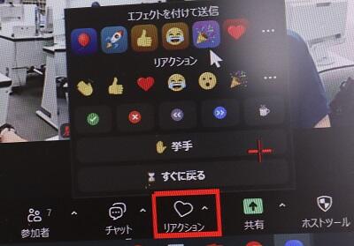 無事、全員が会議室に入った後は、実際にオンラインミーティング機能を利用しながら講座を進めました。Zoomに用意されているチャットやリアクションなどの機能を操作しながら、会議中に必要となる基本的なことを学んでいただきました。