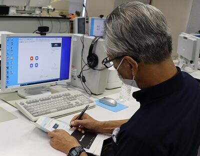 さらに4日の午後3時から参加できる方だけを対象に、センターと自宅を結んでのZoom会議を体験していただきました。