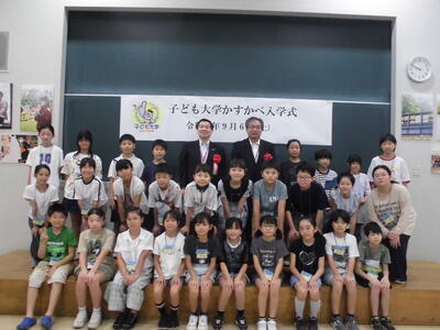 9月6日(土)台風の影響が心配されましたが、当日は台風一過の晴天。「子ども大学かすかべ」のキャンパスとなる共栄大学で入学式が行われました。入学式では、須田学長兼実行委員会委員長から「大学の学びで大切なのは『なぜ?どうして?』といった疑問をもちながら、探究すること。そのことを意識し、子ども大学では『はてな学』『ふるさと学』『生き方学』の3つの分野での体験を、楽しく学んでください。」と歓迎の言葉をいただきました。