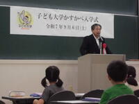 また鎌田教育長からは「今年度の学習テーマは『より良い未来を考えよう』。子ども大学での経験が、皆さんの『未来を創っていく主人公としての力』につながっていくことを期待します。」と30名の参加学生に激励の言葉が贈られました。