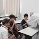 試食の後は、ベトナムとミャンマーの留学生が各グループに入り『留学生にインタビュー』を行いました。「好きな色は?」「どんなキャラクターが好きですか?」「どこの国に行きたいですか?」など、いろいろな質問をしながら、楽しく交流することができました。